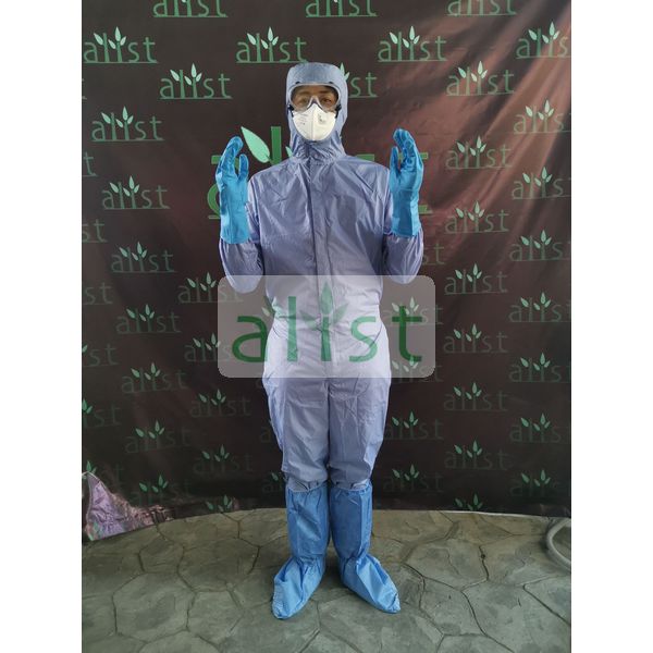 - กาวน์กันน้ำ2ชั้นเนื้อผ้าทำจากใยโพลีเอสเตอร์ 99% คาร์บอน 1%